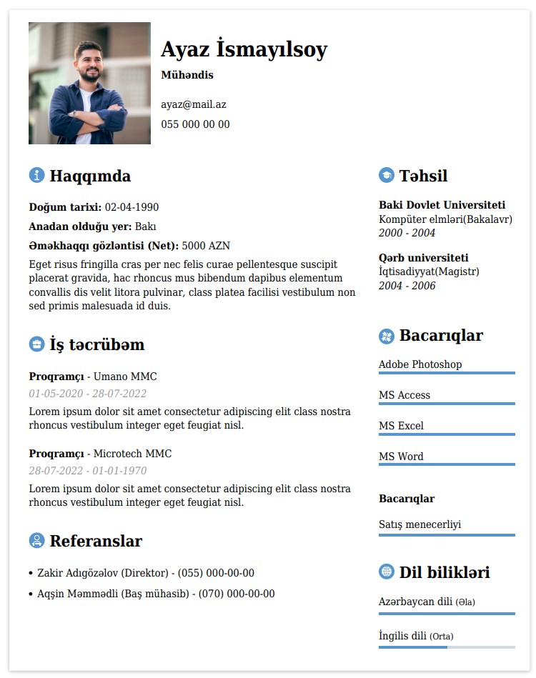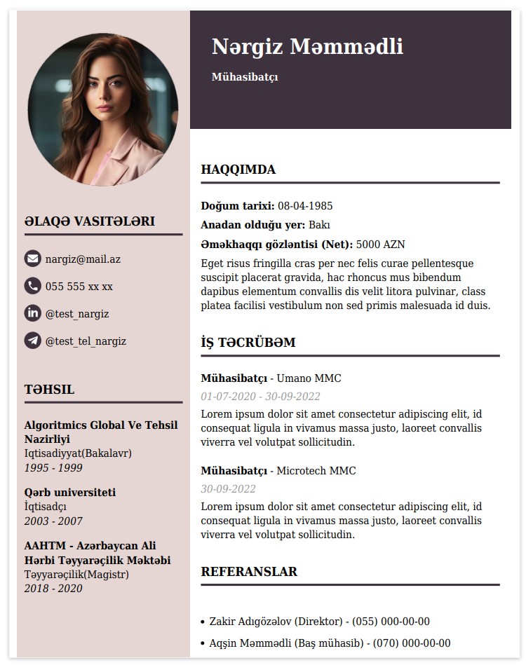 Diqqət! Məlumatlarınızın tam və dolğun doldurulmasına diqqət edin. Bu informasiyalar süni intelekt vasitəsi ilə avtomatik oxunub təhlil edilərək sizin tərcümeyi halınızı formalaşdıracaq.
